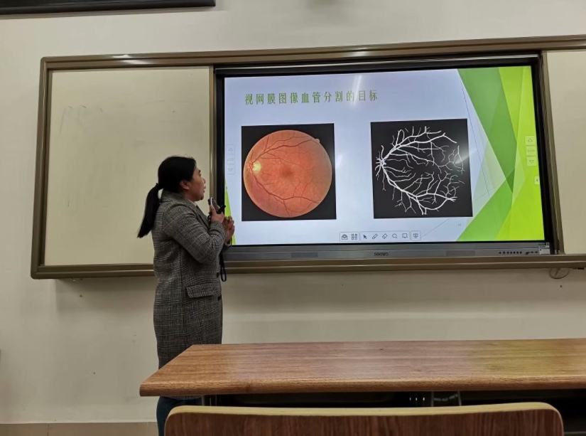 接下来进入正题,周林老师从视网膜血管图像分割的研究背景出发,介绍了本研究方向的研究意义,接着又对自己采用的研究方法进行了详细介绍,并且阐述了视网膜血管图像分割的一般步骤,展示了部分实验数据,最后对自己的研究进展进行了一个总结。