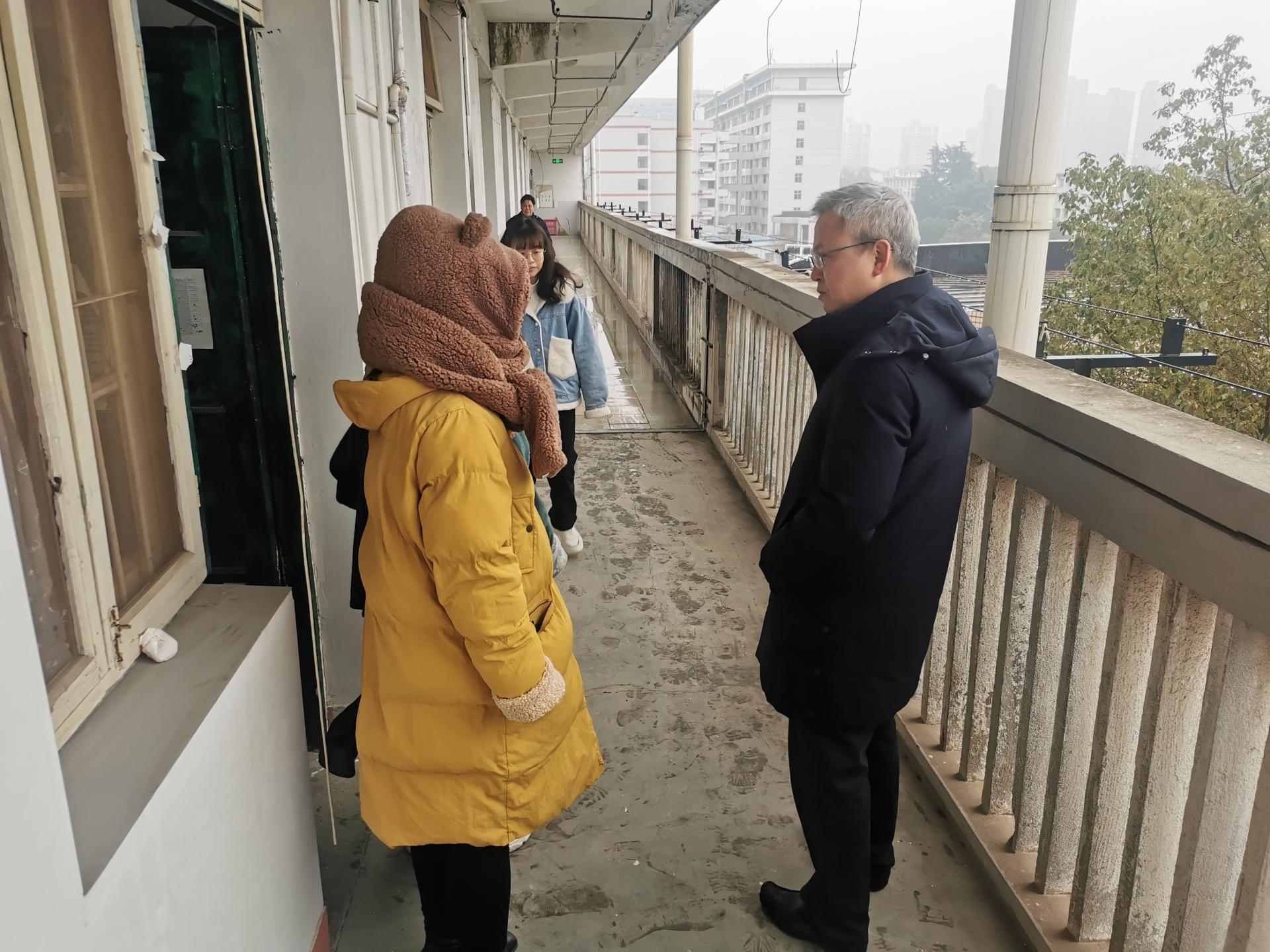 院党委书记许德华、辅导员陈涛前往南望山校区54栋和57栋学生宿舍,看望慰问春节留校学生,向他们致以新春祝福。