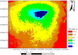图2 基于ELM模型的研究区水深反演图 图3 基于GA-ELM模型的研究区水深反演图