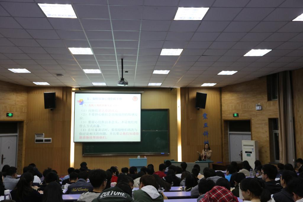 会上,王渊老师以大学生心理健康和安全知识教育为主题展开讲座。根据中国地质大学(武汉)连续数年新生普查数据显示,大学生心理健康问题主要由学习、人际交往、经济等方面原因造成。王渊结合实例从什么是心理健康和心理咨询、大学生心理障碍的鉴别、心理危机及实施心理危机干预的具体方法、学校心理危机干预体系等六个方面展开了讲解。同时提出,学生党员和学生干部要主动关心身边同学,将自助和他助相结合,呵护全体同学的心理健康。